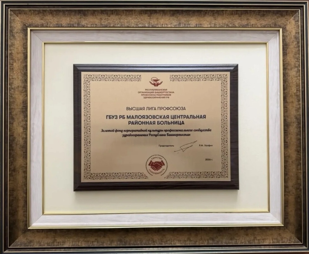 Подводя итоги 2025 года, в числе лучших медицинских организаций, продемонстрировавших высокий уровень социального партнёрства, корпоративной культуры и профсоюзного членства, дипломом «Высшая лига профсоюза» отмечена Малоязовская центральная районная больница.